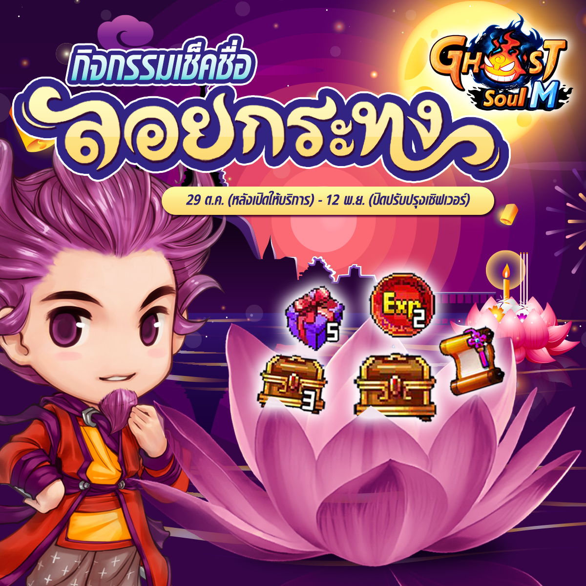 กิจกรรมเช็คชื่อวันลอยกระทง ช่วงนี้ปราบผีก็จะหนักๆ กันหน่อย Ghost Soul M ขอแจกของขวัญรับเทศกาลวันลอยกระทง
