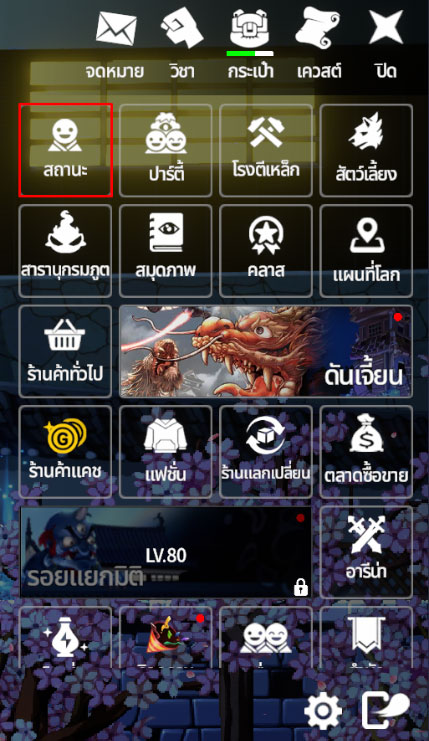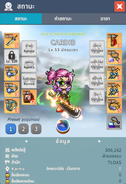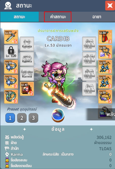 สถานะของตัวละครจะเพิ่มขึ้นตามการเติบโตของตัวละคร หรือจากอุปกรณ์ที่สวมใส่