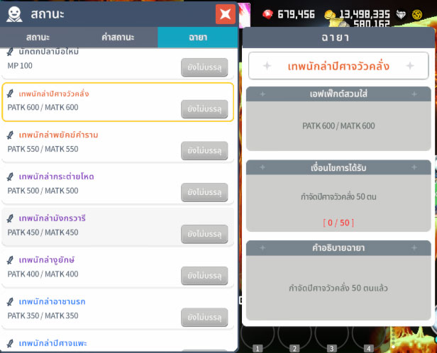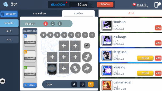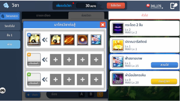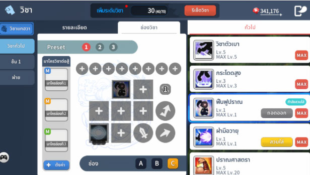 - เมื่อมีเลเวลตามกำหนด คุณสามารถเรียนรู้ ปรมาจารย์ ได้ โดยขึ้นอยู่กับวิชาหลักที่กำลังฝึกฝน