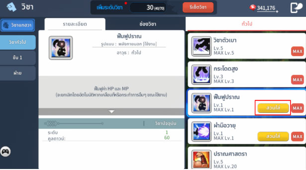 | เพิ่ม EXP | จำนวน EXP ที่ตัวละครได้รับเมื่อปราบมอนสเตอร์จะเพิ่มขึ้น |