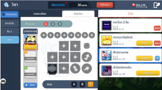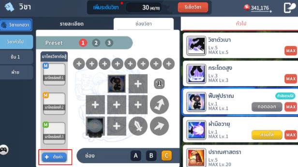 เลือกสวมใส่วิชาที่คุณต้องการลงทะเบียนในมาโครวิชาต่อสู้