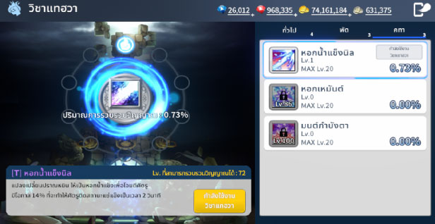 | INT | MP และพลังโจมตีเวทของตัวละครจะเพิ่มขึ้น |