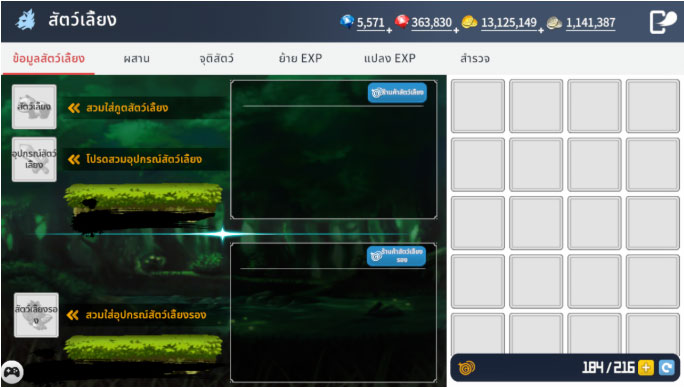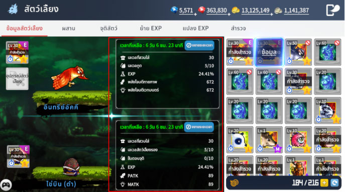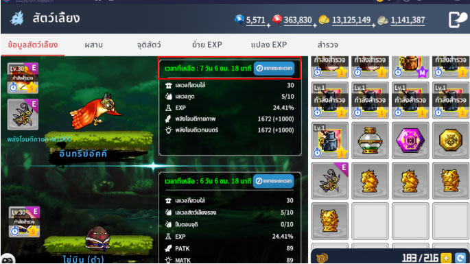 จะมีการแสดงระยะเวลาคงเหลือของสัตว์เลี้ยงและค่าสถานะต่างๆ หากคุณมียาเปิดใช้งานสำหรับสัตว์เลี้ยง & สัตว์เลี้ยงรองเหลืออยู่ สามารถขยายระยะเวลาได้โดยเลือก