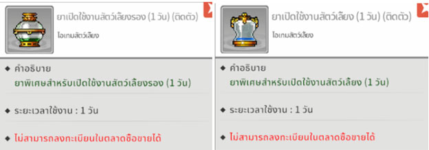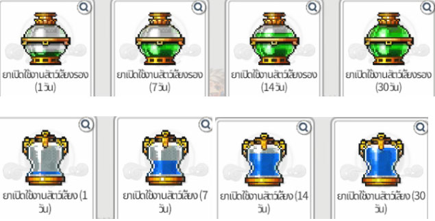 เมื่อเลือก รายการไอเทมที่ใช้งานได้จะปรากฏขึ้น และจะแสดงไอเทมยาที่มีอยู่ จากนั้นเลือกยาที่ต้องการใช้ขยายระยะเวลา และทำการเลือก