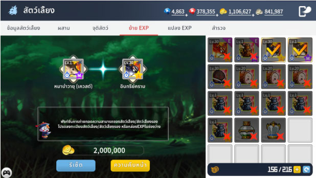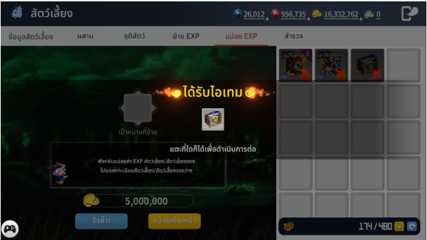 ลงทะเบียนสัตว์เลี้ยงที่คุณต้องการแปลง EXP แล้วดำเนินการแปลง EXP