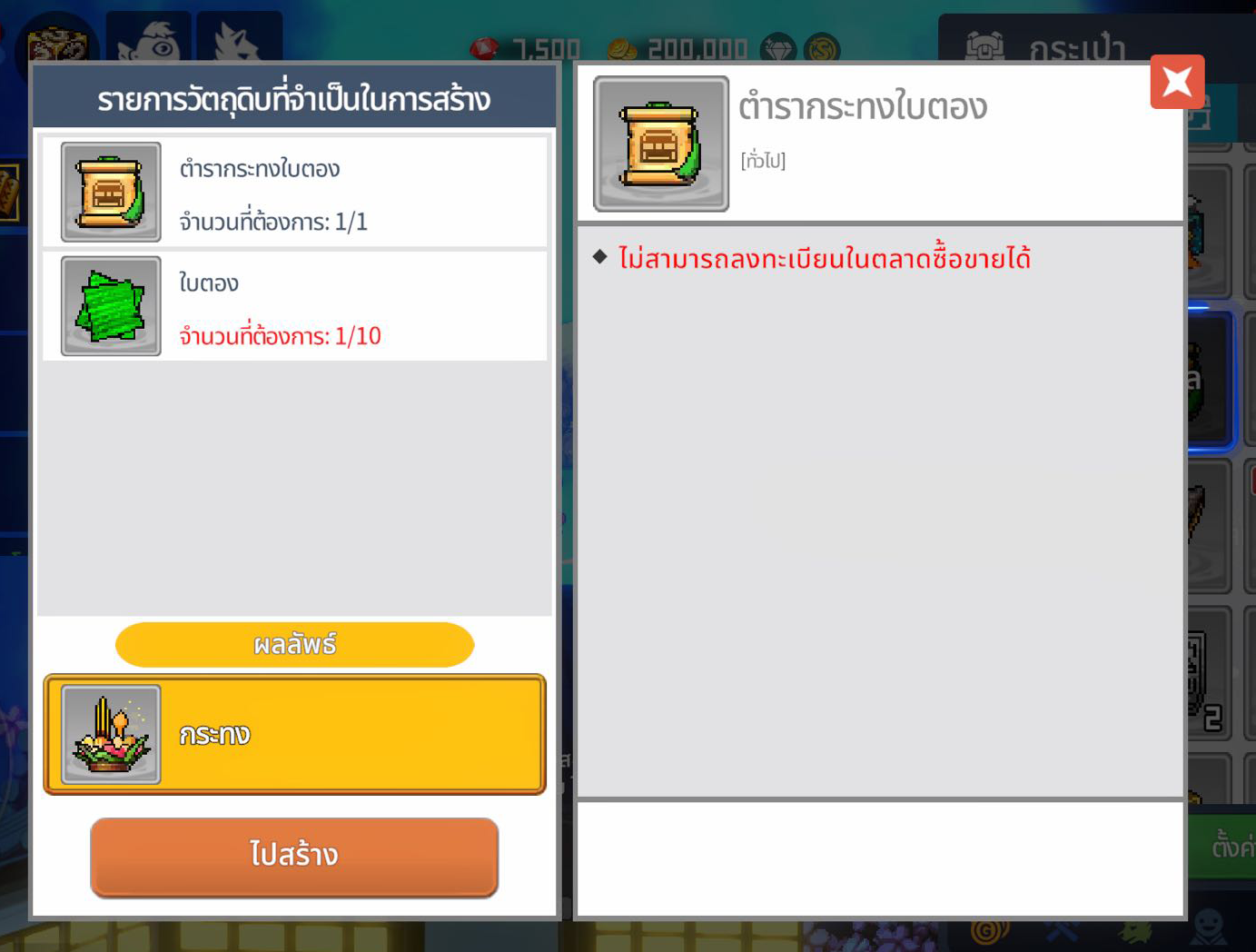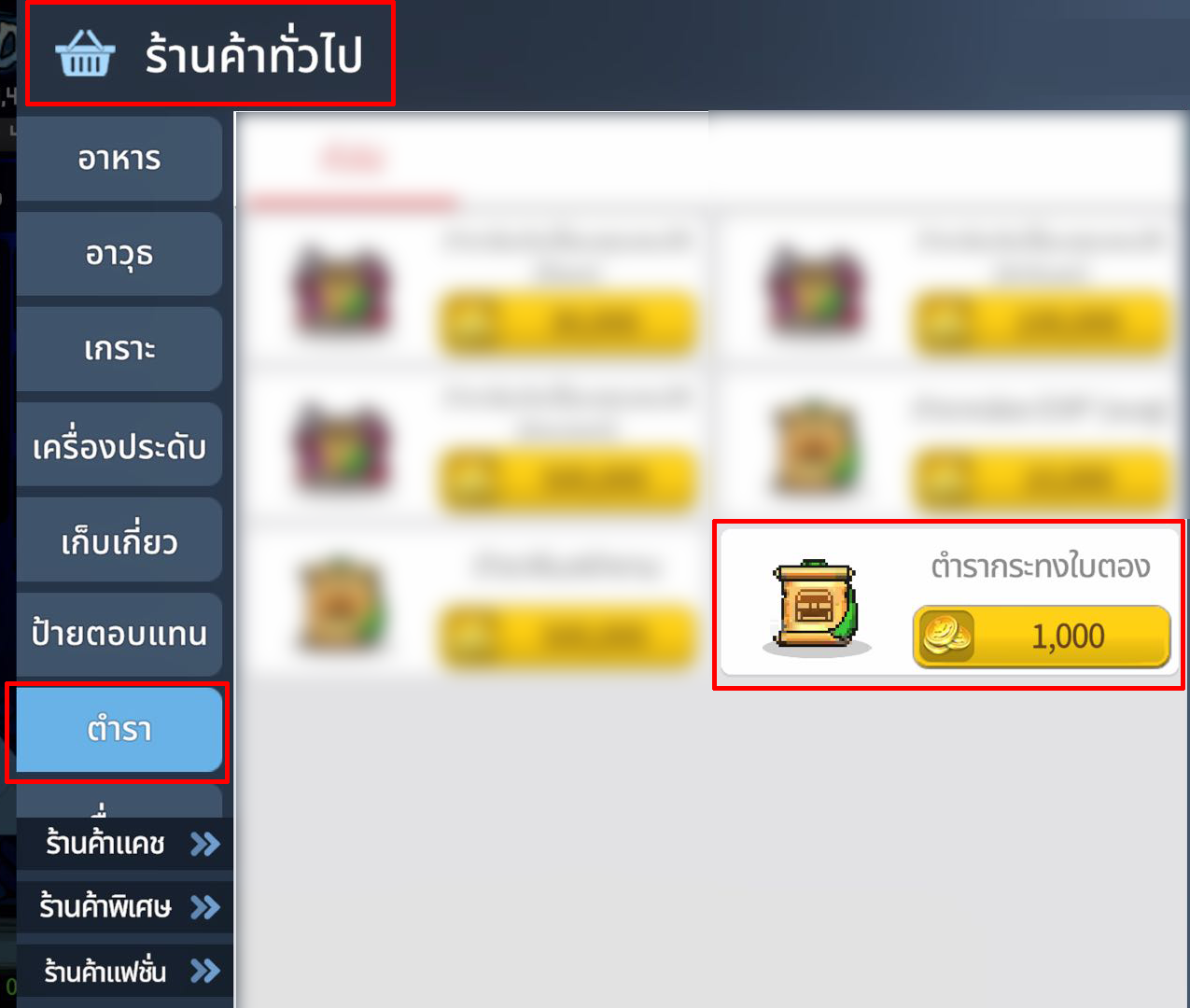 3. ผู้เล่นจะต้องเข้าไปซื้อ "ตำรากระทงใบตอง" จาก "ร้านค้าทั่วไป" หมวด "ตำรา" ราคา 1,000 ทอง