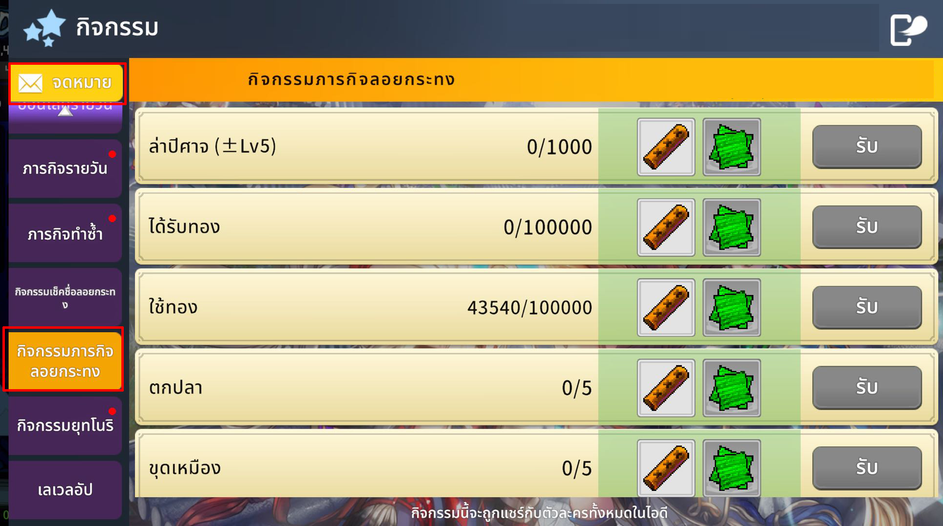 2. ในเวลากิจกรรม ผู้เล่นจะต้องเข้าไปรับไอเทมกิจกรรม “ใบตอง” ผ่านกิจกรรม ภารกิจลอยกระทง