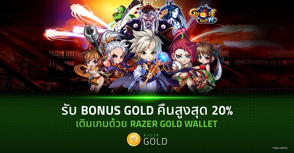 1. รับโบนัสคืน 20% (สูงสุดไม่เกิด 1,000 บาท) เมื่อเติมเกมอย่างน้อย 329 บาทขึ้นไป ด้วย Razer Gold Wallet / รับได้ 1 ครั้งต่อ 1 Razer Gold ID