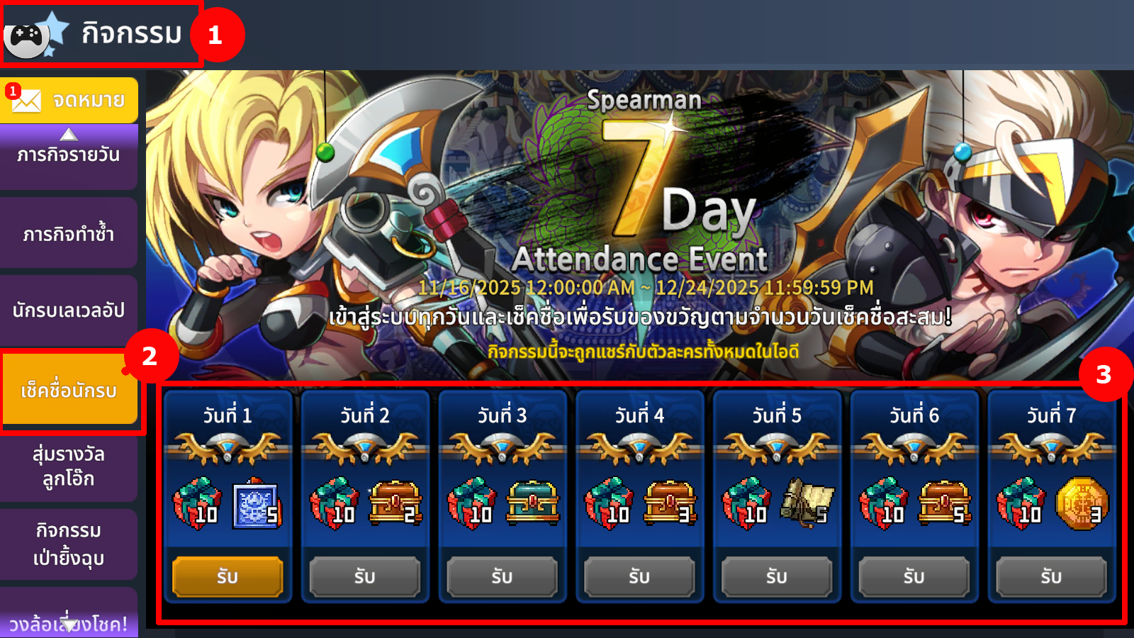 3. ตัวอย่าง รายละเอียดกิจกรรมล็อกอิน 7 วัน ดังภาพด้านล่าง