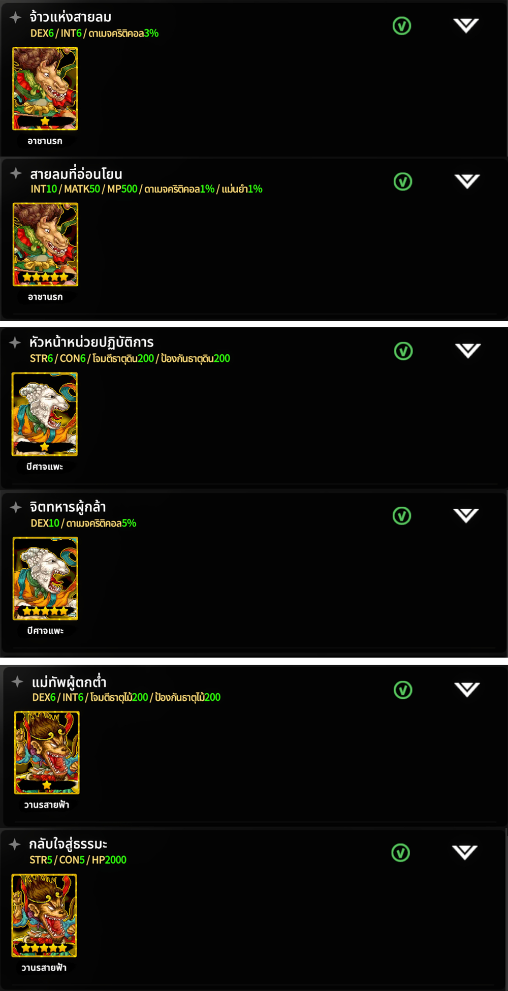 - สามารถใช้ได้เฉพาะตัวละครที่อยู่ใน ฝ่ายธรรมะ หรือ ฝ่ายอธรรม เท่านั้น
