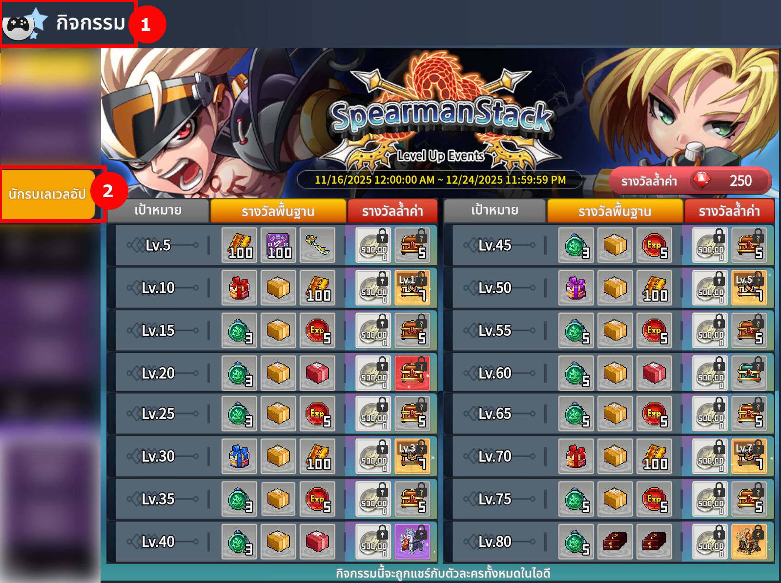 2. กิจกรรมนี้เป็นกิจกรรมที่ แชร์ร่วมกันในบัญชีสำหรับทุกตัวละคร
