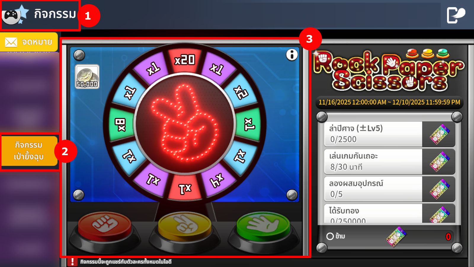 1. ผู้เล่นสามารถรวบรวม ตั๋วเป่ายิ้งฉุบ โดยการทำภารกิจที่กำหนด:
