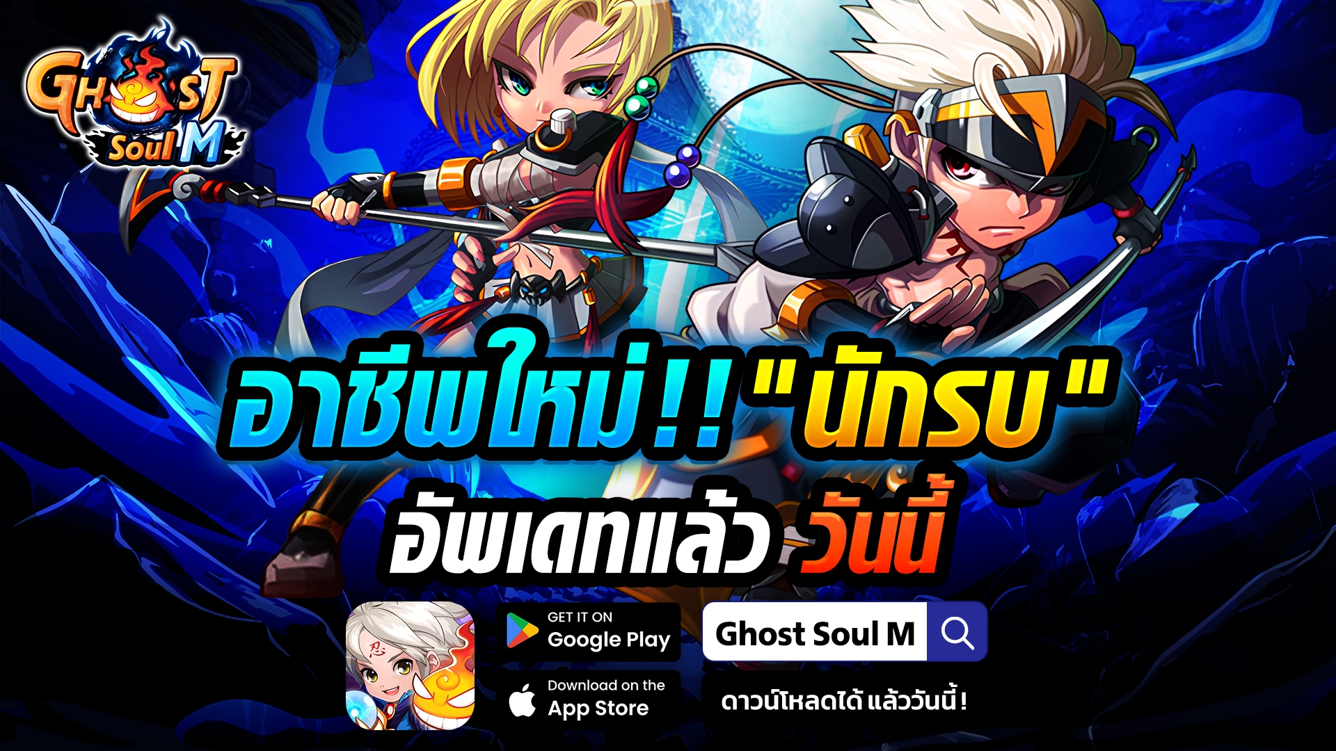 "นักรบ" เป็นอาชีพใหม่ที่มีคุณสมบัติและกลไกการต่อสู้ที่เป็นเอกลักษณ์ โดยเฉพาะอย่างยิ่งสถานะประทับตราโลหิต หากนี่คือหนึ่งในอาชีพตัวละครที่ผู้เล่นต้องการ 26 พฤศจิกายนนี้ Ghost Soul M พร้อมอัปเดตแพทซ์ใหม่ นอกจากอาชีพใหม่แล้ว ยังมีภูตจักราศีชุดใหม่ 3 ตนมาให้ทุกคนได้ครอบครอง และมีกิจกรรมใหม่ต้อนรับอาชีพนักรบอีกด้วย หากไม่อยากพลาดรายละเอียดข้อมูลเกี่ยวกับอาชีพนักรบ รีบไปติดตามกันเลย! ลุย!