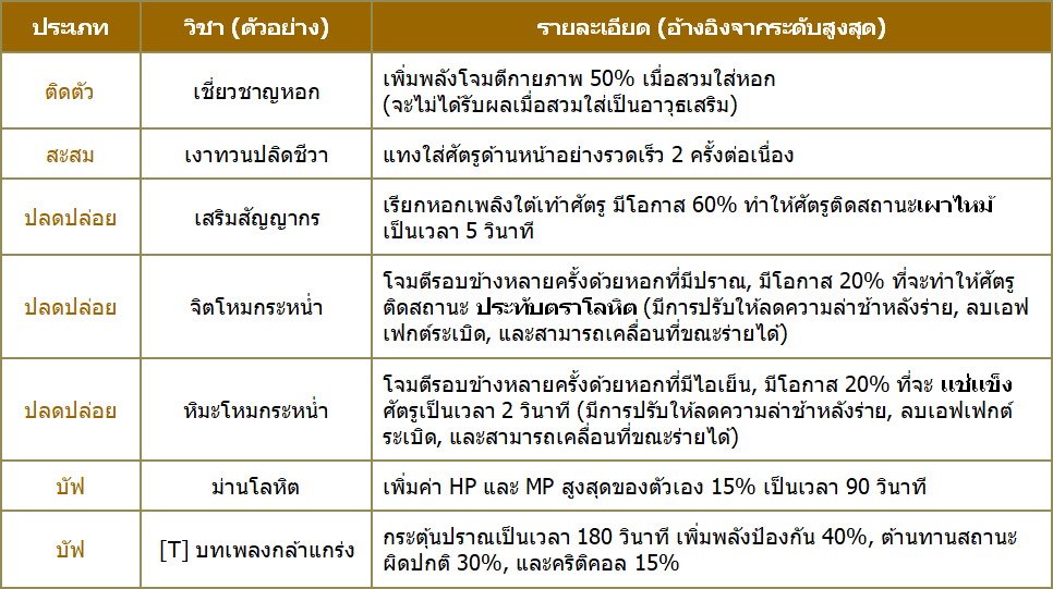 1. วิชาสะสมสถานะ: วิชาเหล่านี้เมื่อใช้จะมีโอกาสสะสมประทับตราโลหิต
