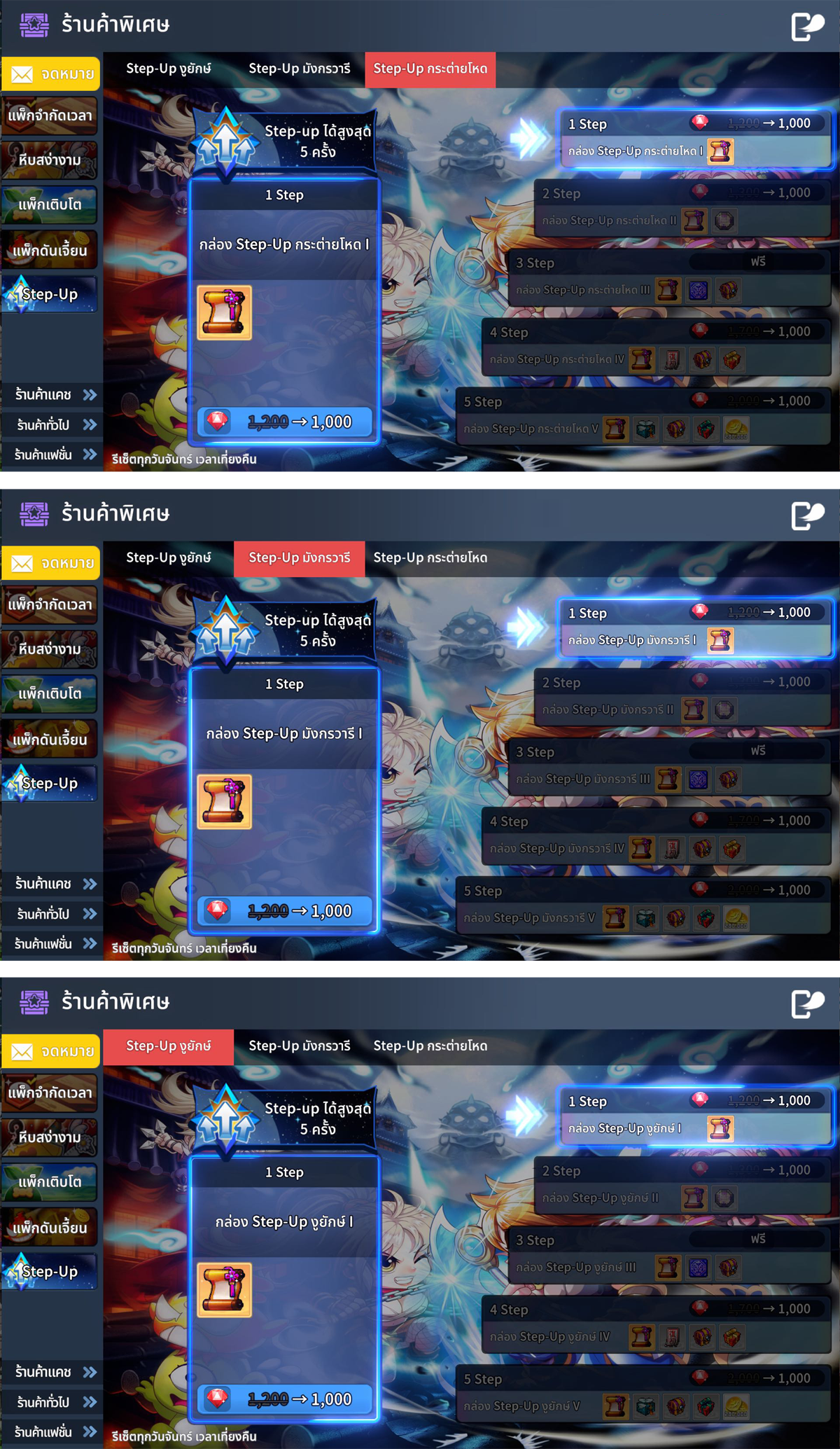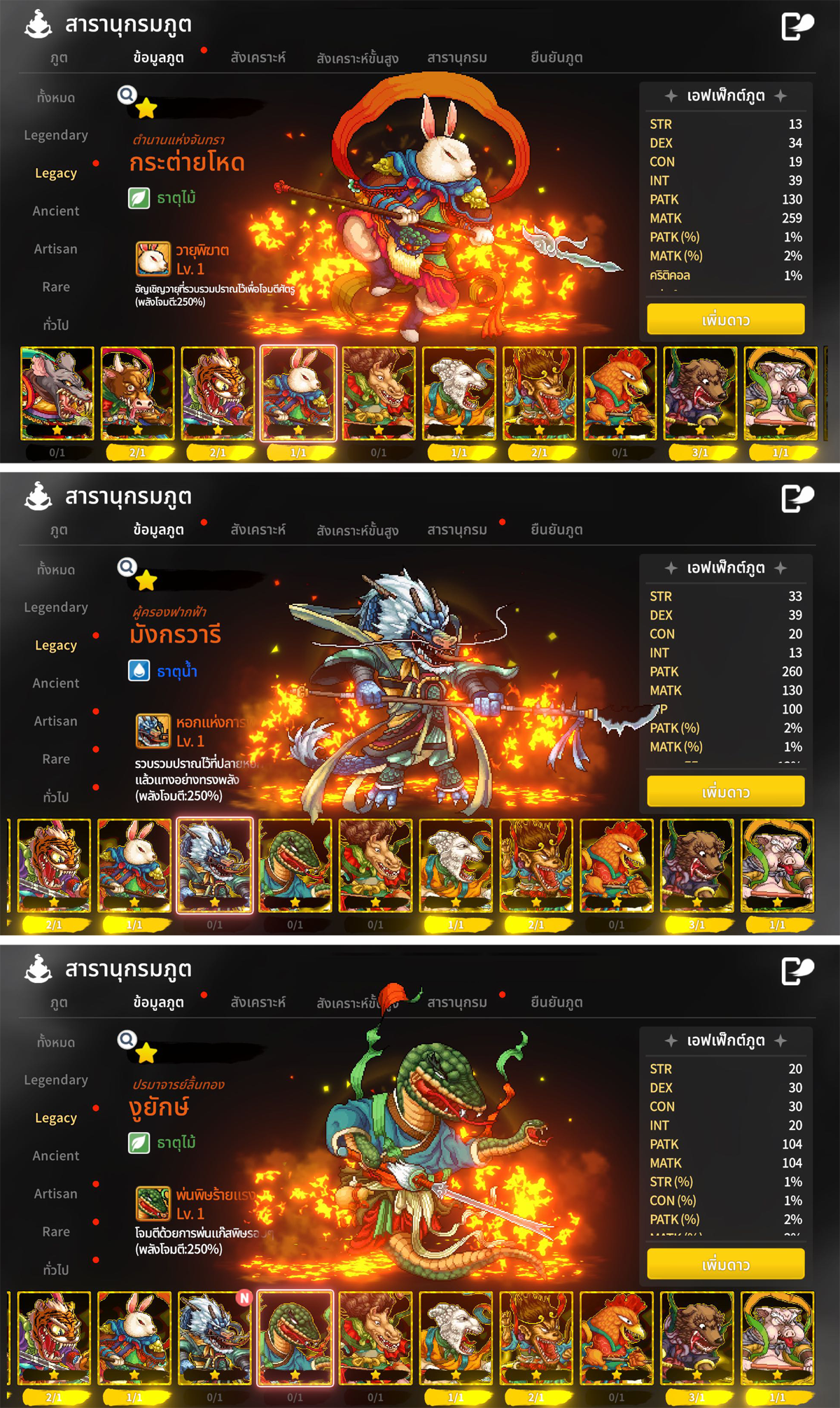 • ภูต Rate Up : เพิ่มอัตราการอัญเชิญภูตในระบบ Step-Up ได้แก่ กระต่ายโหด + มังกรวารี + งูยักษ์