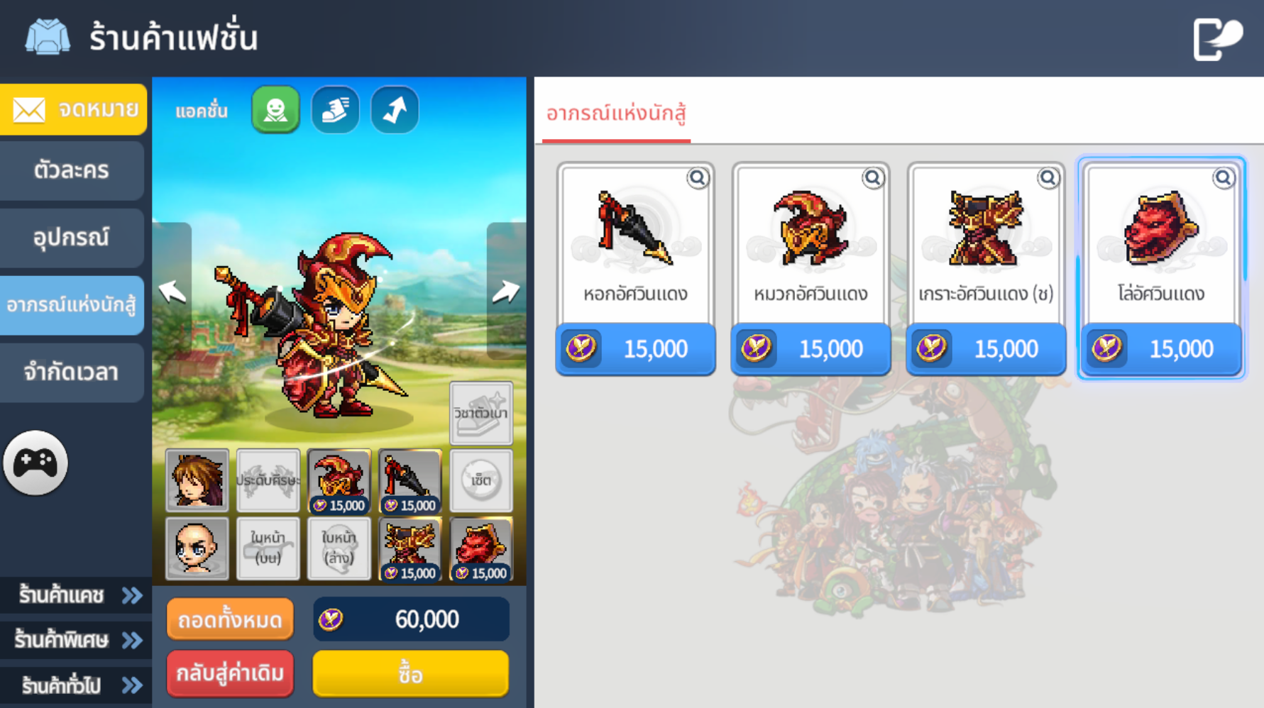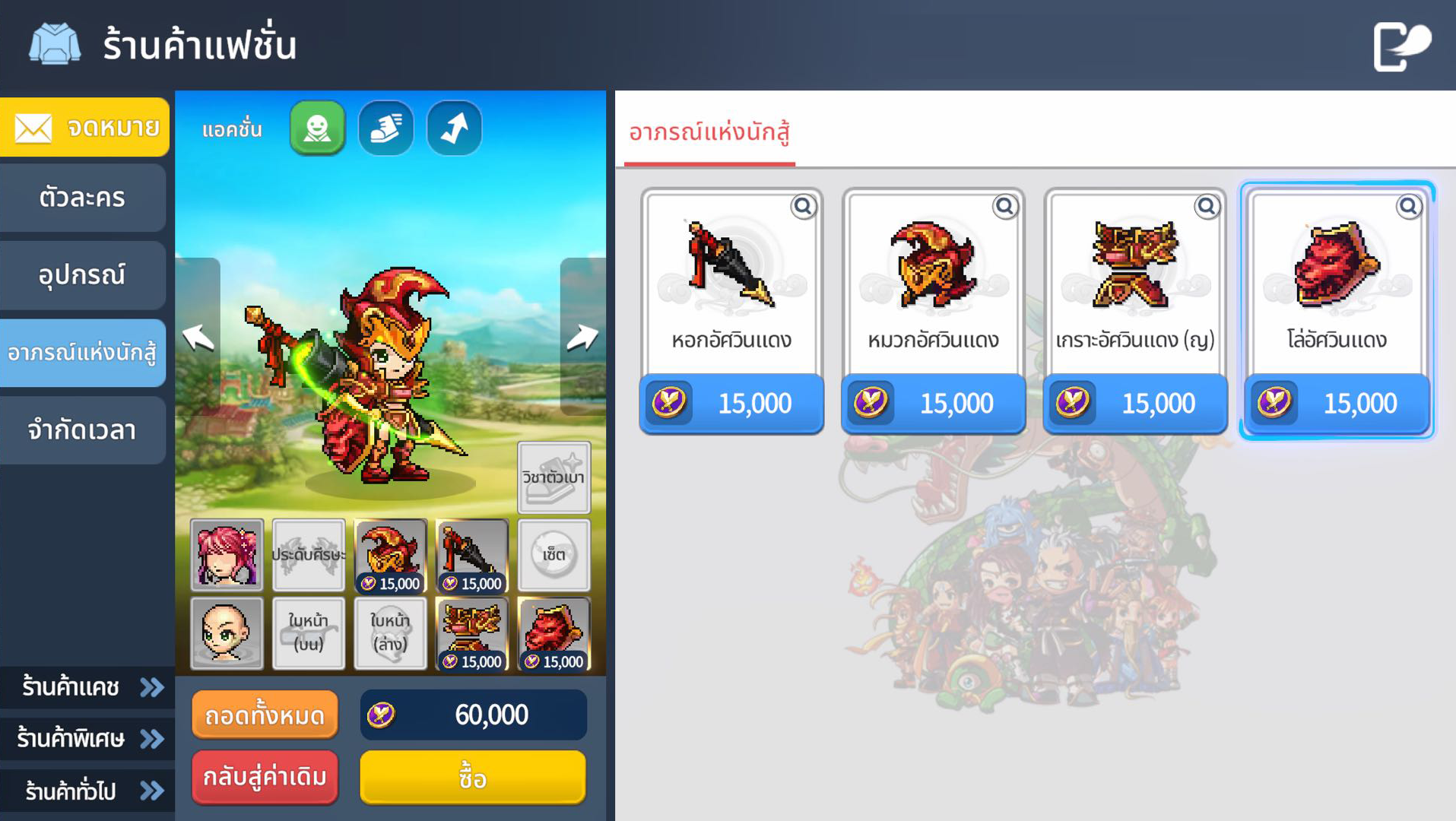 • เปลี่ยนชุด PVP: ยกเลิกการแลกเซ็ต "อัศวินขาว" และอัปเดตชุดอุปกรณ์อาภรณ์แห่งนักสู้ใหม่เป็นเซ็ต “อัศวินแดง"