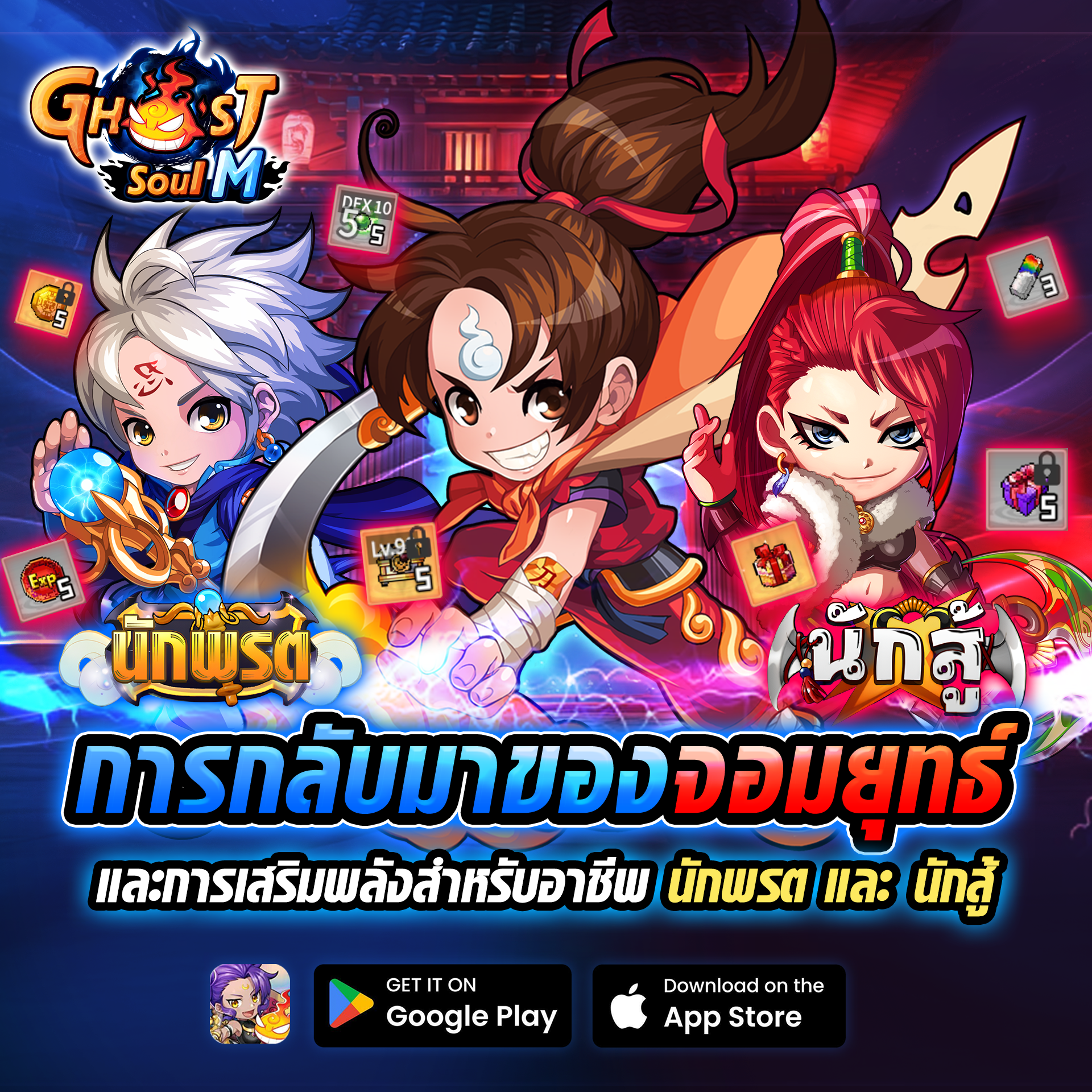 หมายเหตุ : อย่าลืมอัปเดตแอปให้เป็นเวอร์ชันล่าสุด เพื่อเข้าถึงข้อมูลที่ถูกต้องและร่วมสนุกกับกิจกรรมได้อย่างราบรื่น ขอให้ทุกท่านมีความสุขกับการเดินทางในโลก Ghost Soul M 👻 ครับ!